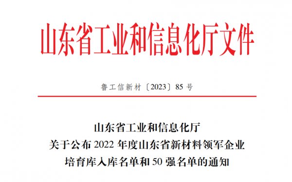 5月19日,山东省工业和信息化厅公布《2022年度山东省新材料领军企业培育库入库名单》和《2022年度山东省新材料领军企业50强名单》,565net必赢客户端复材荣登双榜!