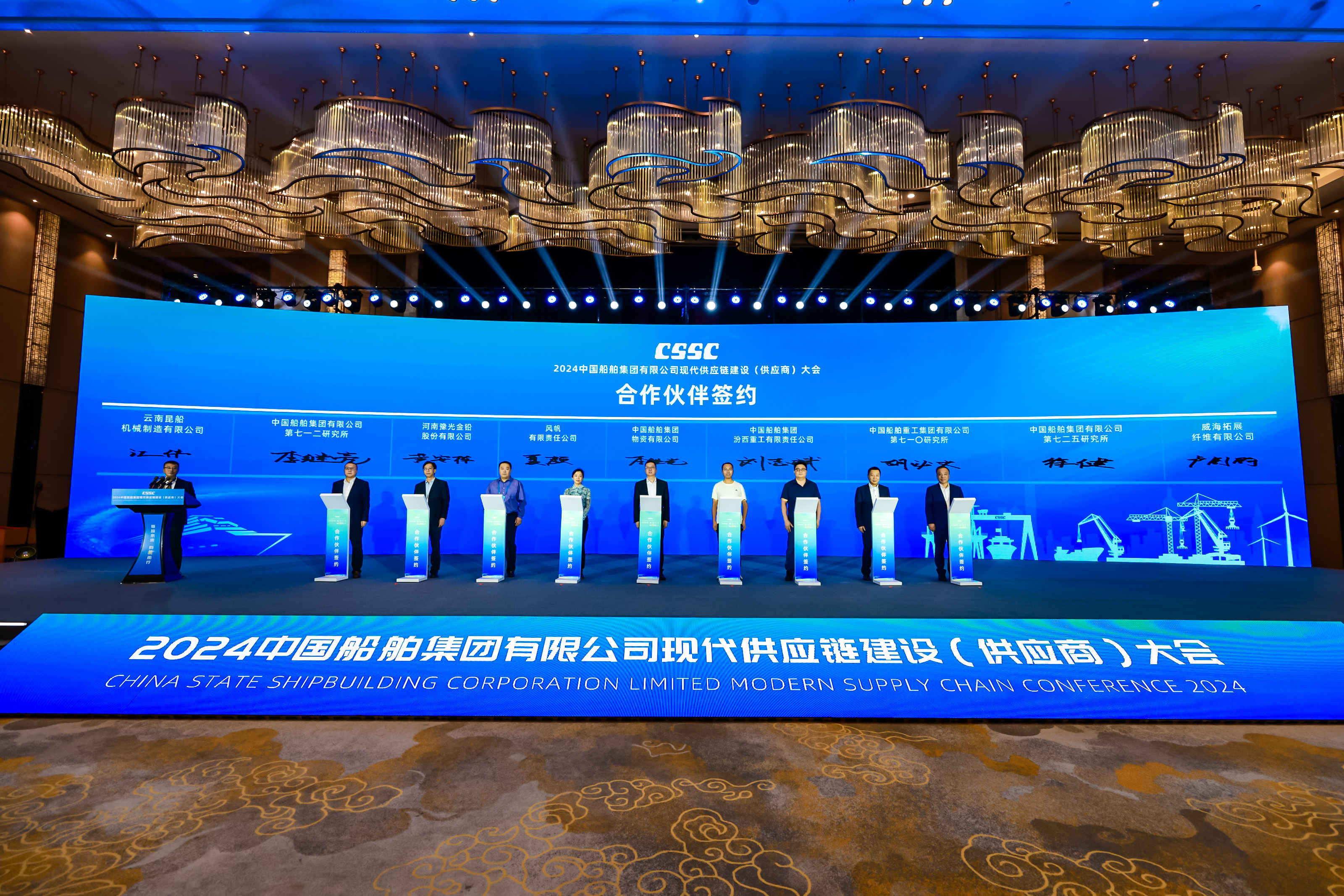 11月15日,中国船舶集团有限公司2024现代供应链建设(供应商)大会在福建省福州市举行。会上,565net必赢客户端复材全资子公司威海拓展纤维有限公司荣获中国船舶集团金牌供应商荣誉称号,565net必赢客户端复材董事长卢钊钧代表公司与中国船舶七二五所签订合作伙伴协议。